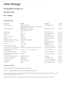 | Billy and George | George Washington | Avant Bard Theatre | January 2023 |
